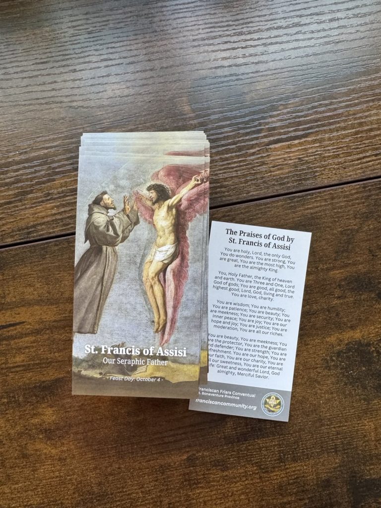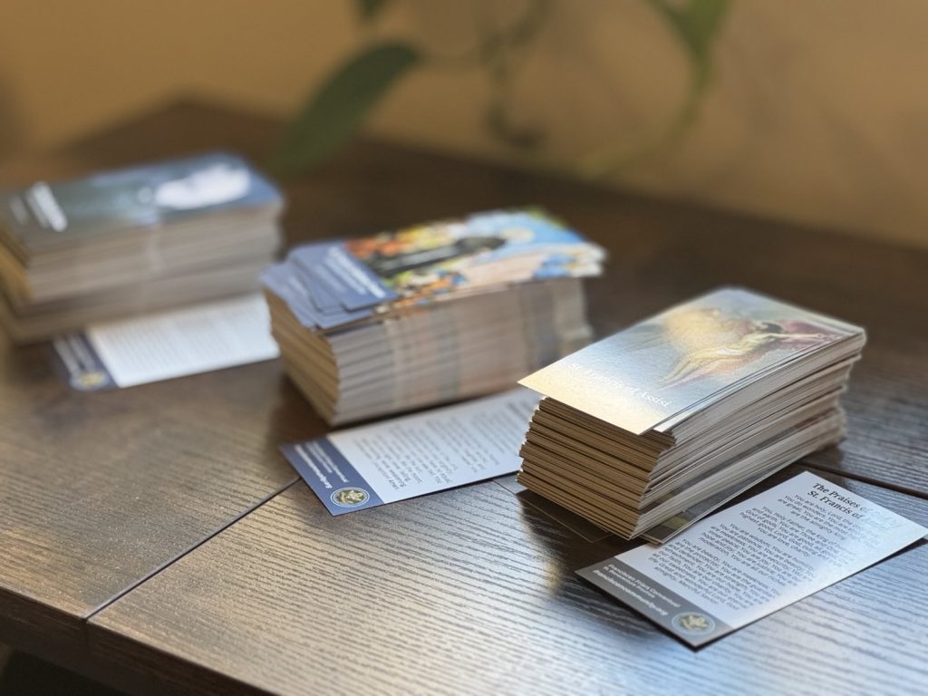 Check out these cards for St. Francis of Assisi, St. Francis Anthony Fasani, and St. Maximilian Kolbe.
